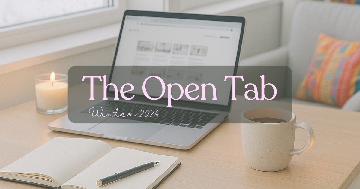 Welcome back to The Open Tab: Winter 2026 Edition, where I’ve gathered the online pieces that have lingered in my browser — essays, interviews, and reflections that sparked something I wanted to keep. These are the words I couldn’t quite close, the ideas that keep reshaping the work inside The Writer’s Atelier, as well as the random articles/spaces I’m enjoying lately online.